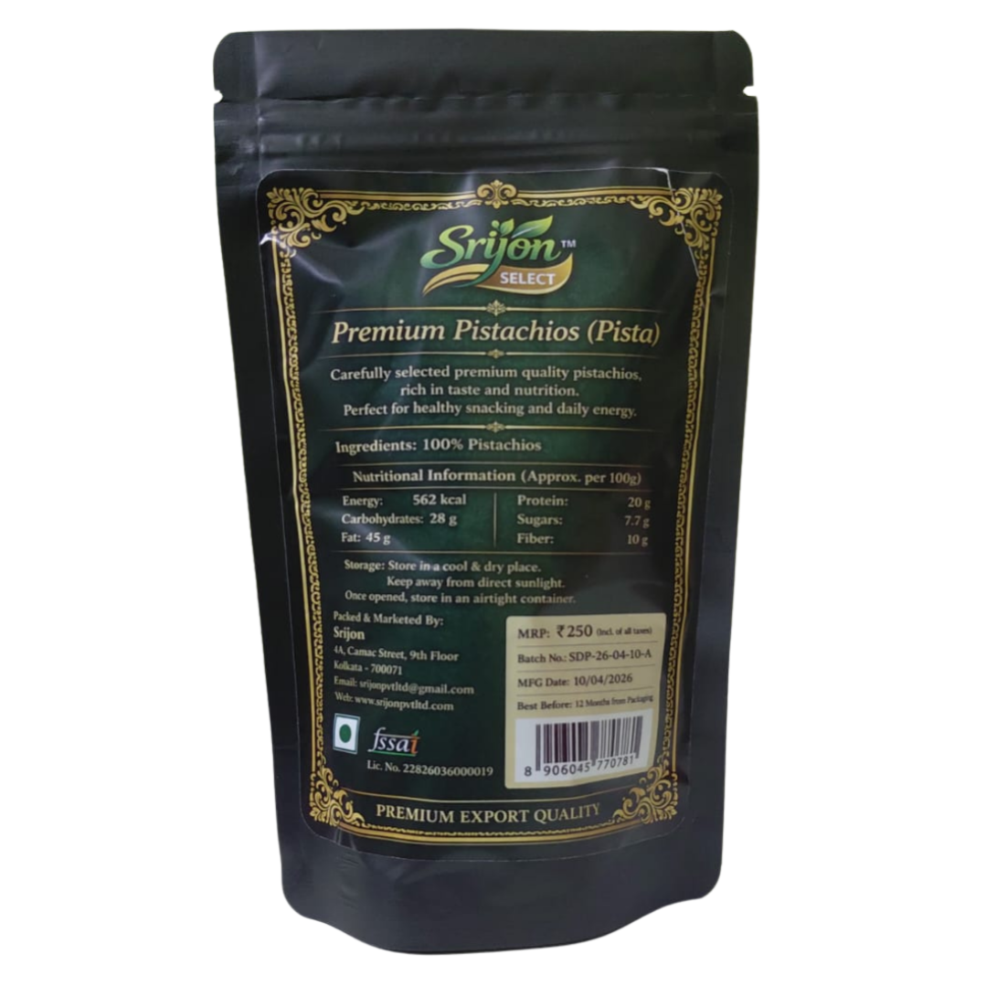 Premium quality pistachios, carefully selected for their rich taste and natural crunch. Packed with protein, fiber, and essential nutrients, these delicious nuts are perfect for healthy snacking anytime. Hygienically packed to preserve freshness, flavor, and quality in every bite