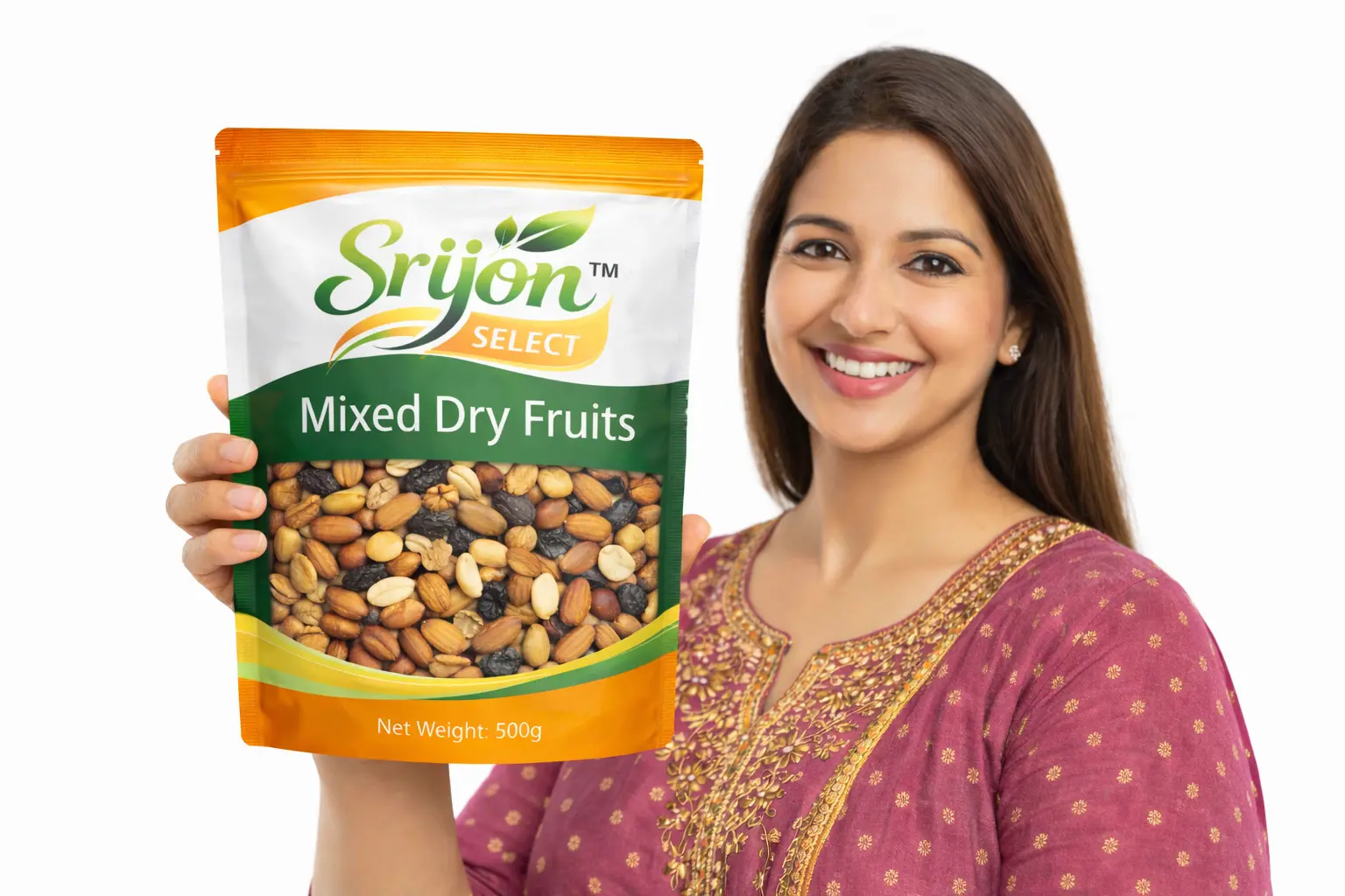 A premium blend of nature’s finest dry fruits, hand-picked and packed to deliver rich flavor and wholesome nutrition. This mix brings together crunchy almonds, creamy cashews, sweet raisins, and nutrient-rich walnuts — perfect for snacking, gifting, or adding to your breakfast and desserts. Packed hygienically to maintain freshness and taste, SrijonSelect Mixed Dry Fruits are a healthy, energy-boosting choice any time of day.