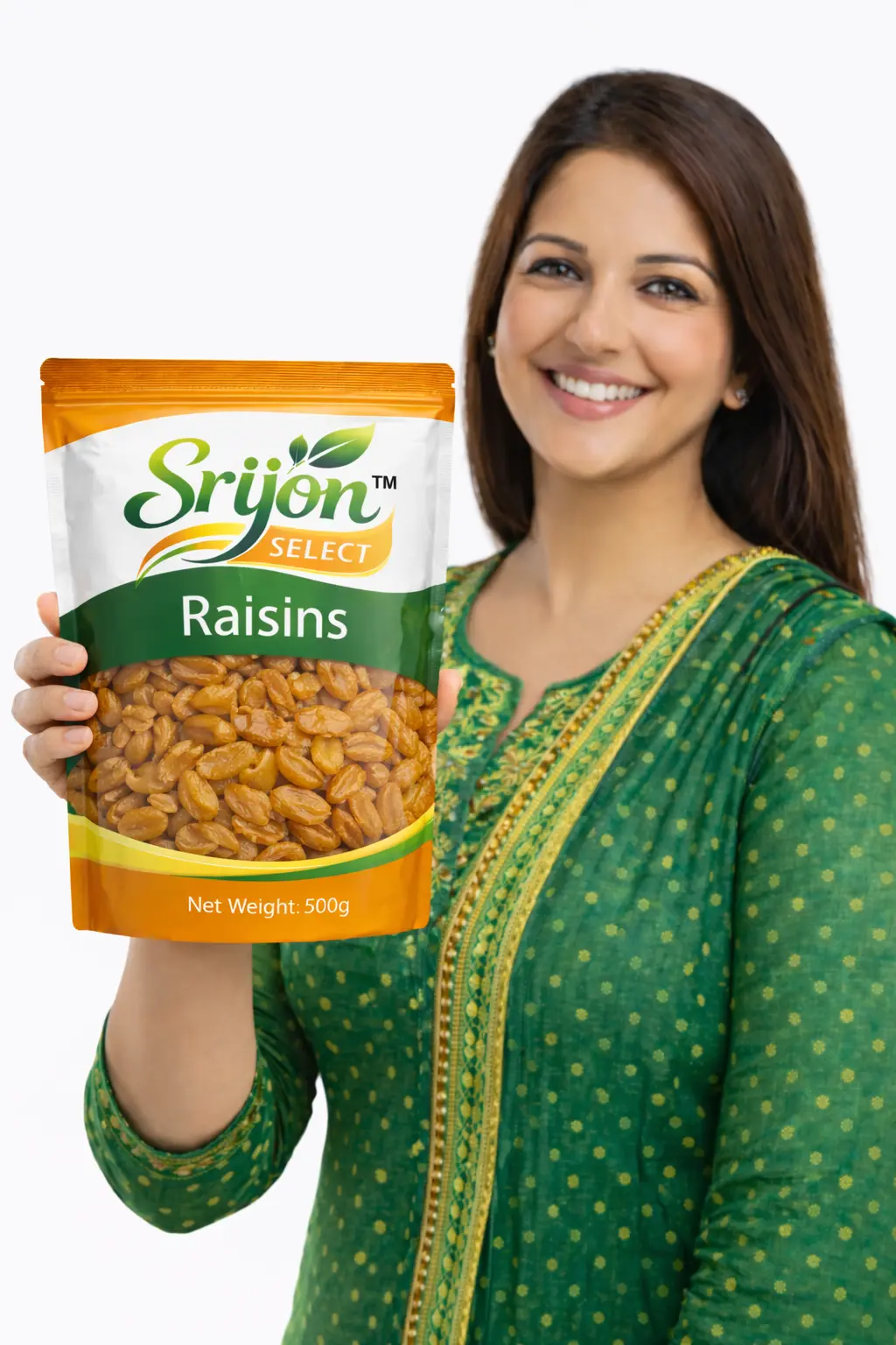 Naturally sweet and carefully selected raisins, packed to retain freshness and quality. Rich in energy, fiber, and essential nutrients, these soft and juicy raisins are perfect for healthy snacking, cooking, baking, or adding to desserts. Hygienically packed for superior taste and long-lasting freshness.