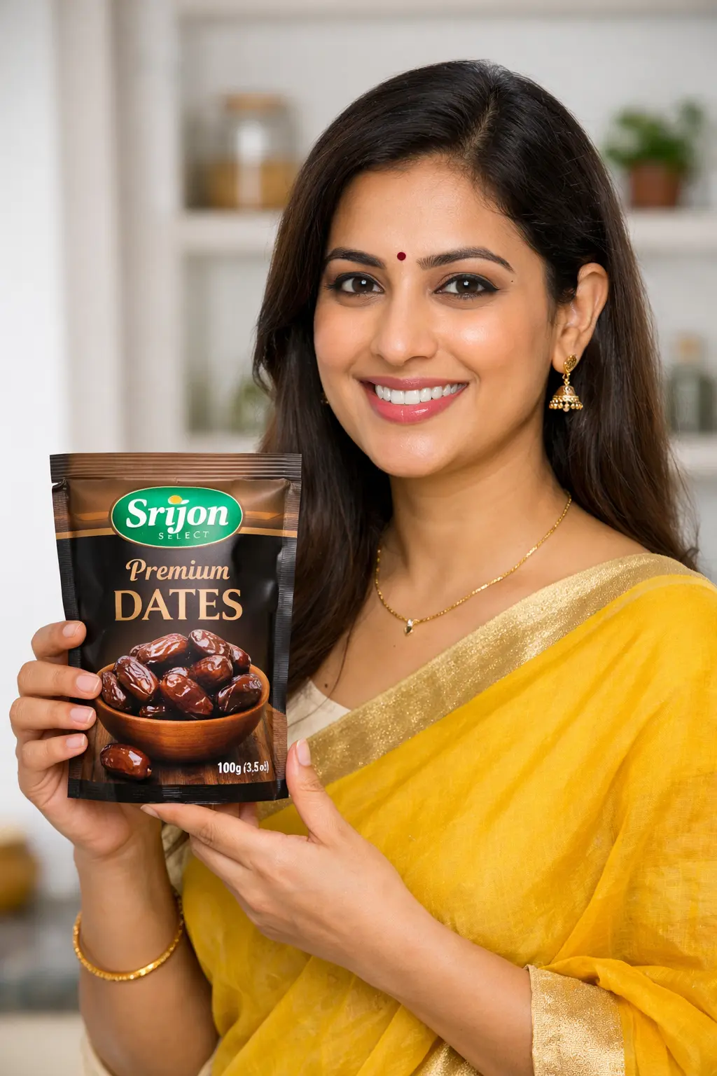 Experience the natural sweetness and wholesome goodness of Srijon Select Dates. Carefully sourced and hand-picked for quality, these dates are rich in fiber, essential nutrients, and natural energy — perfect for snacking, gifting, or adding to your daily diet. Each 100 gms pouch is hygienically packed to ensure freshness, purity, and long shelf life, bringing you nothing but the best nature has to offer.